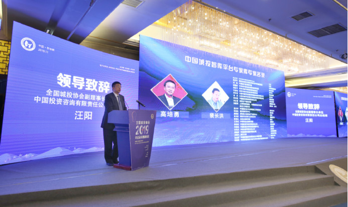 會上,全國城投協(xié)會副理事長單位——中國投資咨詢公司總經(jīng)理汪陽在臺上發(fā)布了中國城投智庫。